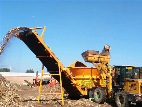 ? ? ? ? ?圓盤(pán)式樹(shù)根破碎機(jī)工作時(shí),由電機(jī)帶動(dòng)轉(zhuǎn)子進(jìn)行高速旋轉(zhuǎn),同時(shí)進(jìn)料斗也在電機(jī)的帶動(dòng)下進(jìn)行緩慢的旋轉(zhuǎn),物料經(jīng)抓機(jī)投放進(jìn)料斗,料斗在旋轉(zhuǎn)的同時(shí)內(nèi)壁上的撥料齒會(huì)將物料均勻的撥到轉(zhuǎn)子上,高速旋轉(zhuǎn)的轉(zhuǎn)子碰到物料經(jīng)由轉(zhuǎn)子上刀片的切削和撕扯實(shí)現(xiàn)物料的初步破碎,進(jìn)過(guò)初步破碎的物料無(wú)在自身重力和轉(zhuǎn)子沖擊力的作用下掉在破碎腔內(nèi)的篩網(wǎng)上,符合要求的物料會(huì)通過(guò)篩網(wǎng)排出,而不符合要求的會(huì)在破碎腔內(nèi)進(jìn)行二次甚至三次的破碎加工直至符合要求。